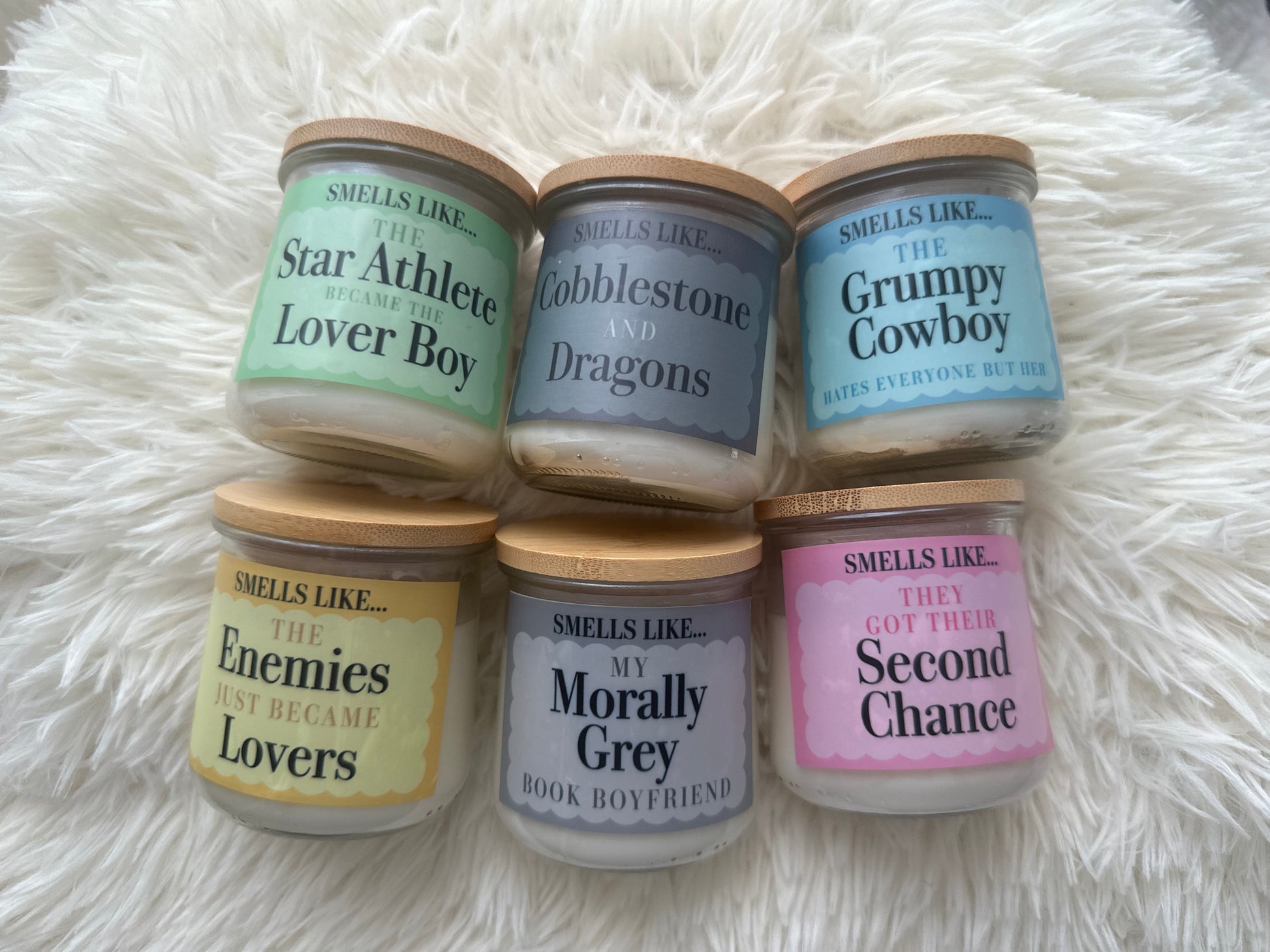 Handmade 5oz candles with scents specific to unique book themes! This enemies to lovers candle is inspired by The Unhoneymooners by Christina Lauren. Smells fruity and floral.